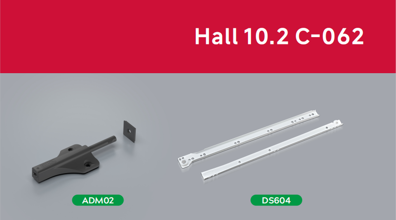 本次展會,我們將攜核心產品與前沿技術亮相,展示廣受好評的MB系列隱藏軌、MK系列隱藏軌、GM01系列鉸鏈、ADM02系列反彈器、AD1520D系列氣動桿等,助力五金家居行業的創新突破。
