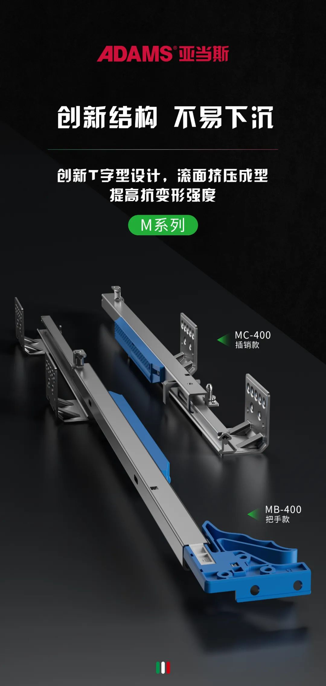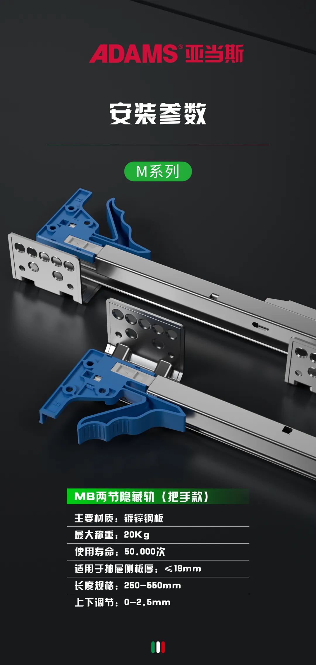 美好生活由此開啟,負重推拉不費力,亞當斯M系列二節隱藏軌能承重達20kg,平穩堅固。